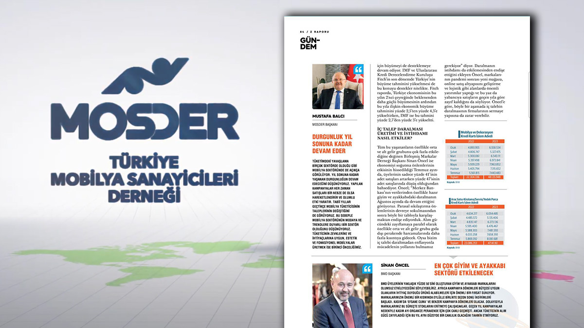 MOSDER Başkanı Mustafa BALCI, Z Raporu'na değerlendirmede bulundu: Türkiye'deki yavaşlama birçok sektörde olduğu gibi mobilya sektöründe de açıkça görülüyor. Yıl sonuna kadar yaşanan durgunluğun devam edeceğini düşünüyoruz. Yapılan kampanyalar her zaman satışları bir nebze de olsa hareketlendirir ve olumlu etki yaratır. Tabii yıllar geçtikçe mobilya tüketicisinin taleplerinin değiştiğini de görüyoruz. Bu sebeple mobilya sektörünün modaya ve trendlere duyarlı bir sektör olduğunu düşünüyoruz. Tüketicinin zevklerine ve ihtiyaçlarına uygun, estetik ve fonksiyonel mobilyalar üretmek ise birinci önceliğimiz.