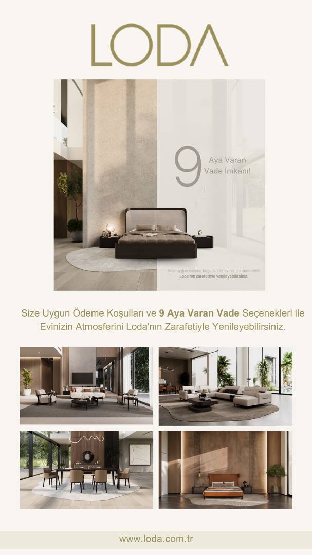 Size uygun ödeme koşulları ve 9 aya varan vade seçenekleri ile evinizin atmosferini Loda’nın zarafetiyle yenileyebilirsiniz.