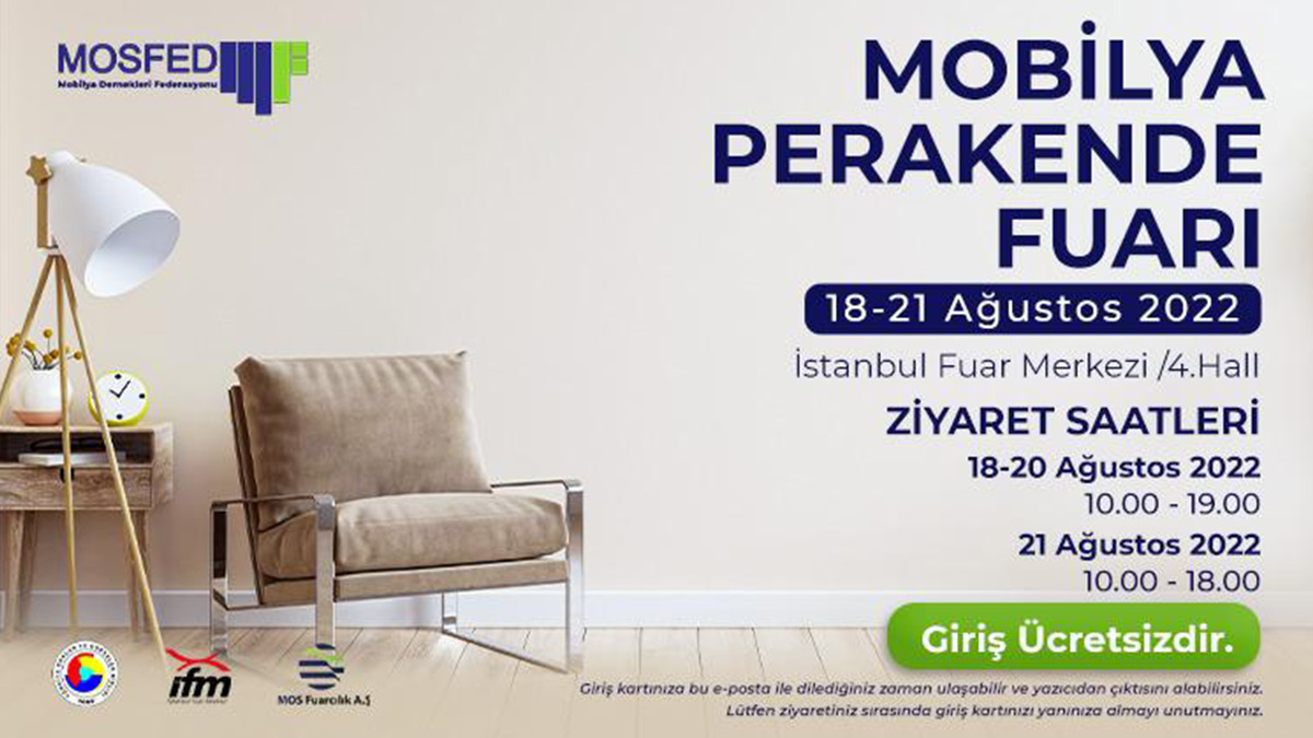 Mobilya Perakende Fuarı 18-21 Ağustos 2022 tarihleri arasında İstanbul Fuar Merkezi 4. Hall’de düzenlenecektir.