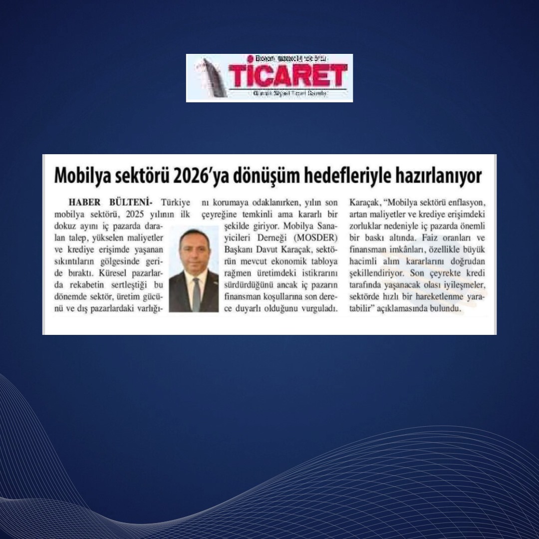 2026’ya ilişkin projeksiyonlarda, finansmana erişimin kolaylaştırılması, üretimde verimlilik ve teknolojik dönüşüm yatırımları, markalaşma ile sürdürülebilirlik başlıkları öne çıkıyor. Türk mobilya sektörü, üretim kabiliyeti ve tasarım gücüyle küresel ölçekte rekabet etmeye devam ederken; iç pazarda güvenin yeniden tesis edilmesi ve ihracatta stratejik açılımların kararlılıkla sürdürülmesi, önümüzdeki dönemin belirleyici unsurları olarak görülüyor.