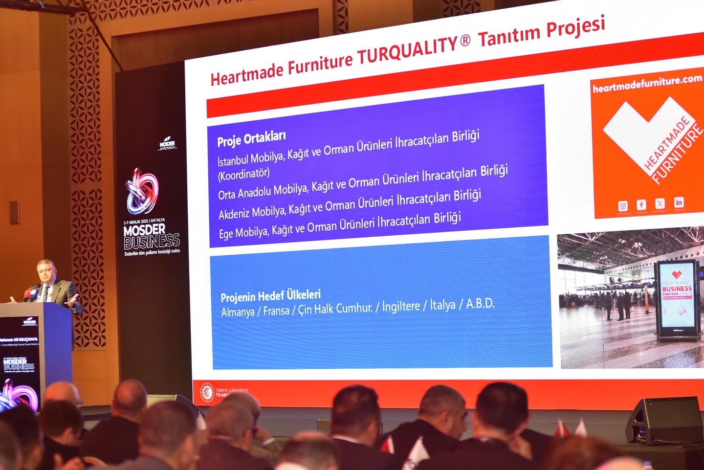 "İhracat Devlet Destek Paketleri" konusunda bir sunum yapan Kılıçkaya; mobilya sektörünün ihracat performansını, bakanlığın sektöre sağladığı destekleri ve gelecek dönem vizyonunu paylaştı. Türk mobilya sektörünün son yıllarda gösterdiği güçlü büyümeyi vurgulayarak, üreticilerden ihracatçılara kadar emeği geçen tüm paydaşları tebrik etti.