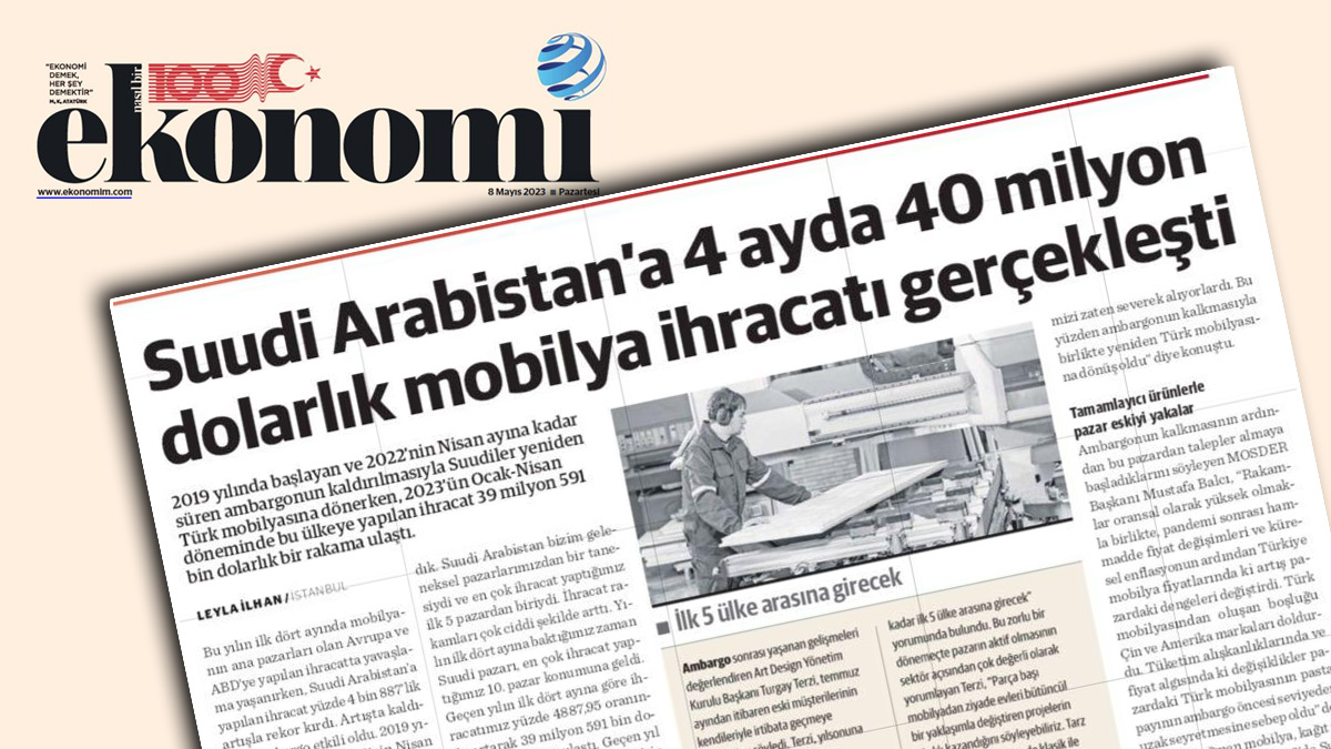 2019 yılında başlayan ve 2022'nin Nisan ayına kadar süren ambargonun kaldırılmasıyla Suudiler yeniden Türk mobilyasına dönerken, 2023'ün Ocak-Nisan döneminde bu ülkeye yapılan ihracat 39 milyon 591 bin dolarlık bir rakama ulaştı.