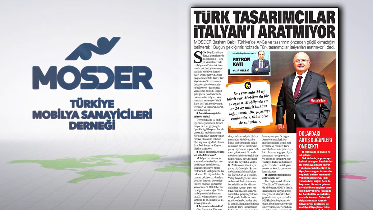 Son 20 yılda dünya dünya pazarlarında 36. sıradan 11. sıraya yükselen Türk mobilya sektörü artık tasarımda gücünü göstermeye başladı. Mobilya Sanayicileri Derneği (MOSDER) Başkanı Mustafa Balcı, Türkiye'de Ar-Ge ve tasarım önceden güçlü olmadığını belirterek "Tasarımda yerlileşme başladı. Bugün geldiğimiz noktada Türk tasarımcılar İtalyan tasarımcıları aratmıyor" dedi. Balcı ile Türk mobilyasını, trendleri ve sektörün sorunlarını konuştuk.